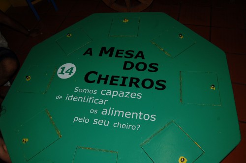 Depois ainda passámos pela “Mesa dos Cheiros” para sabermos se conseguíamos identificar os alimentos pelo cheiro.