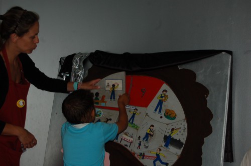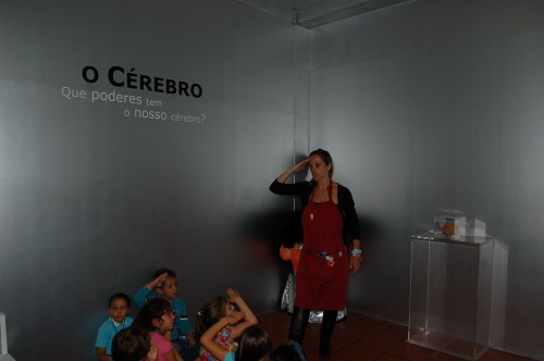 Fomos para a sala do “Cérebro” e aí fizemos um jogo para tentarmos perceber onde ficavam as zonas do cérebro que comandam as nossas capacidades.